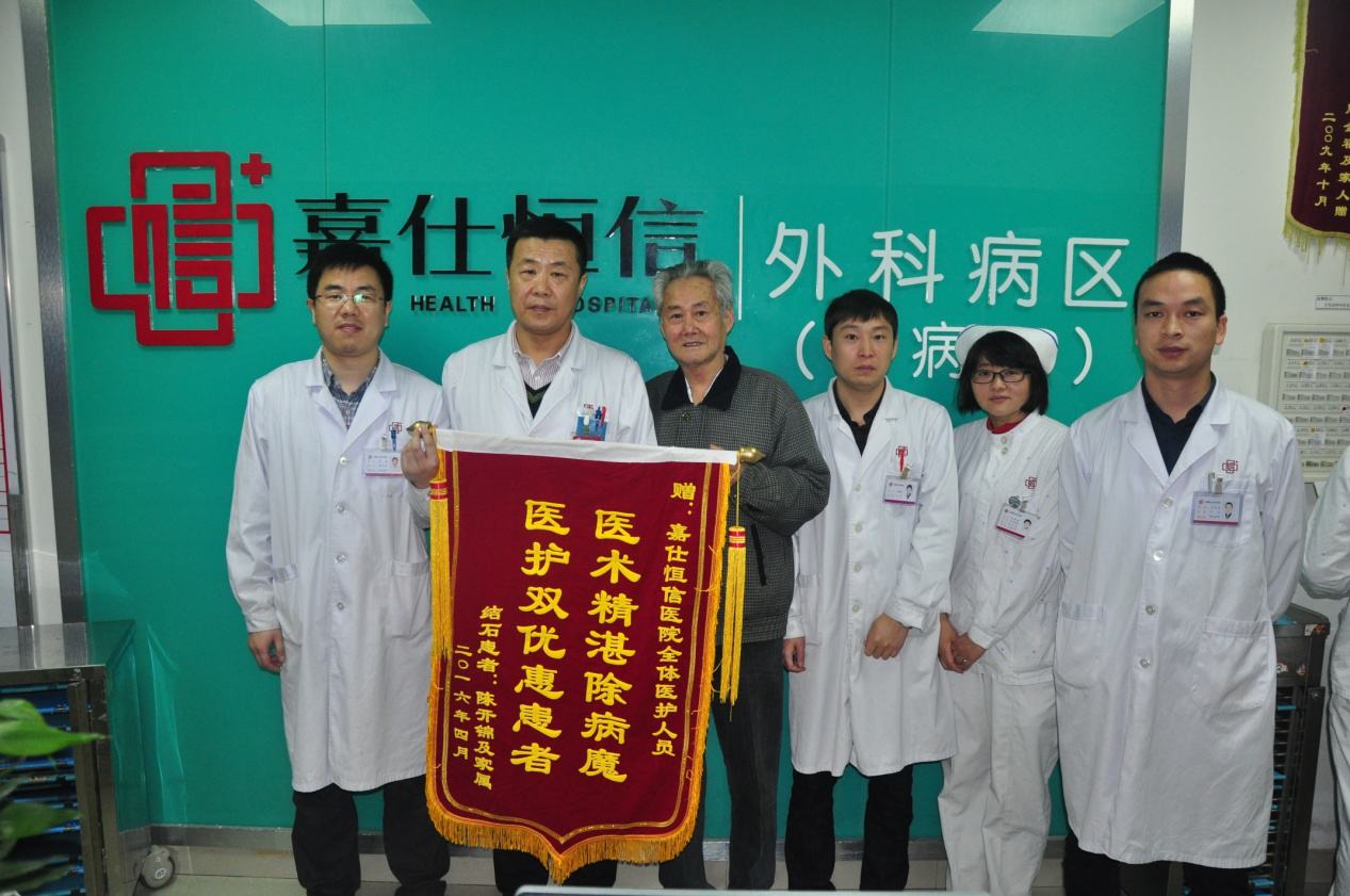 近日,由徐主任亲自给老陈做腹腔镜下胆囊切除术,经过1小时的手术,老陈的胆囊结石被成功取出。术后第二天,老陈便可下床活动,并且,经过这几天的观察和恢复,痊愈出院。患者送锦旗感谢医院普外科医疗团队的高超医技及精心护理。